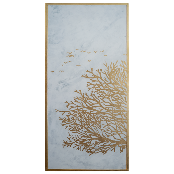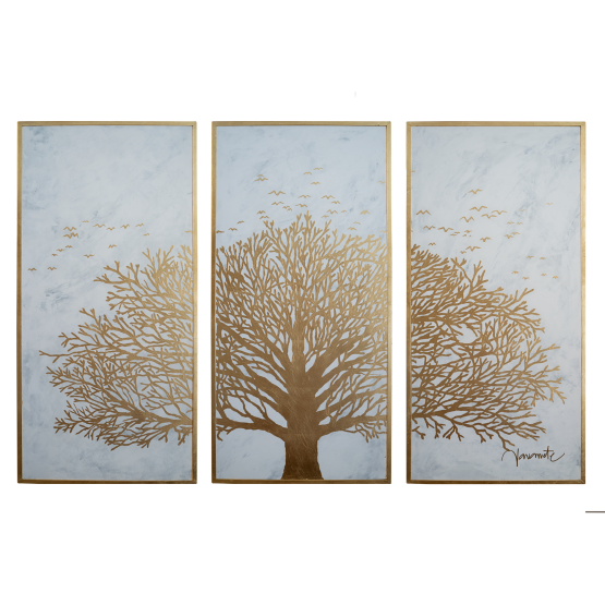 Hand-painted piece with acrylic technique on MDF, on a box-type frame with gold leaf details.